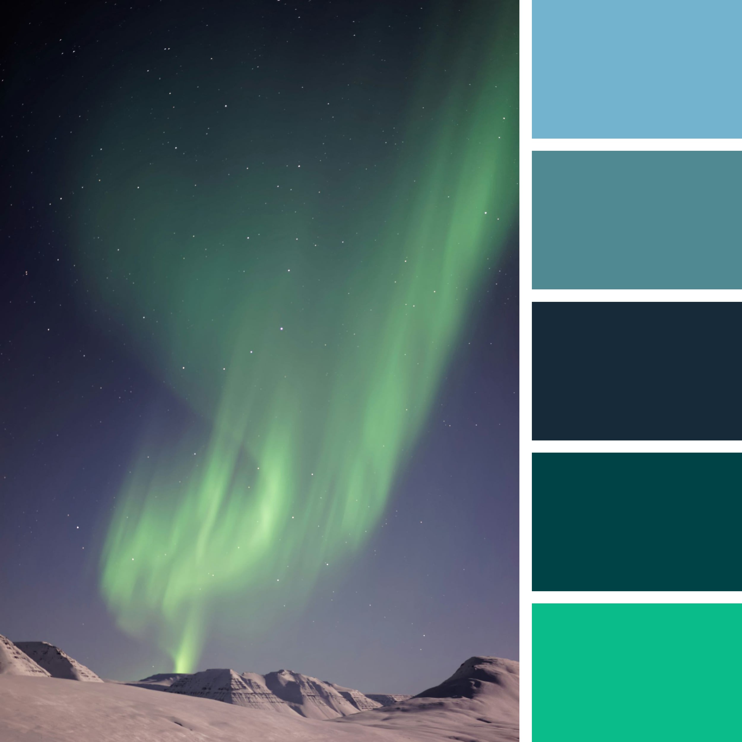 A conversation between night sky, frozen land, and luminous light.